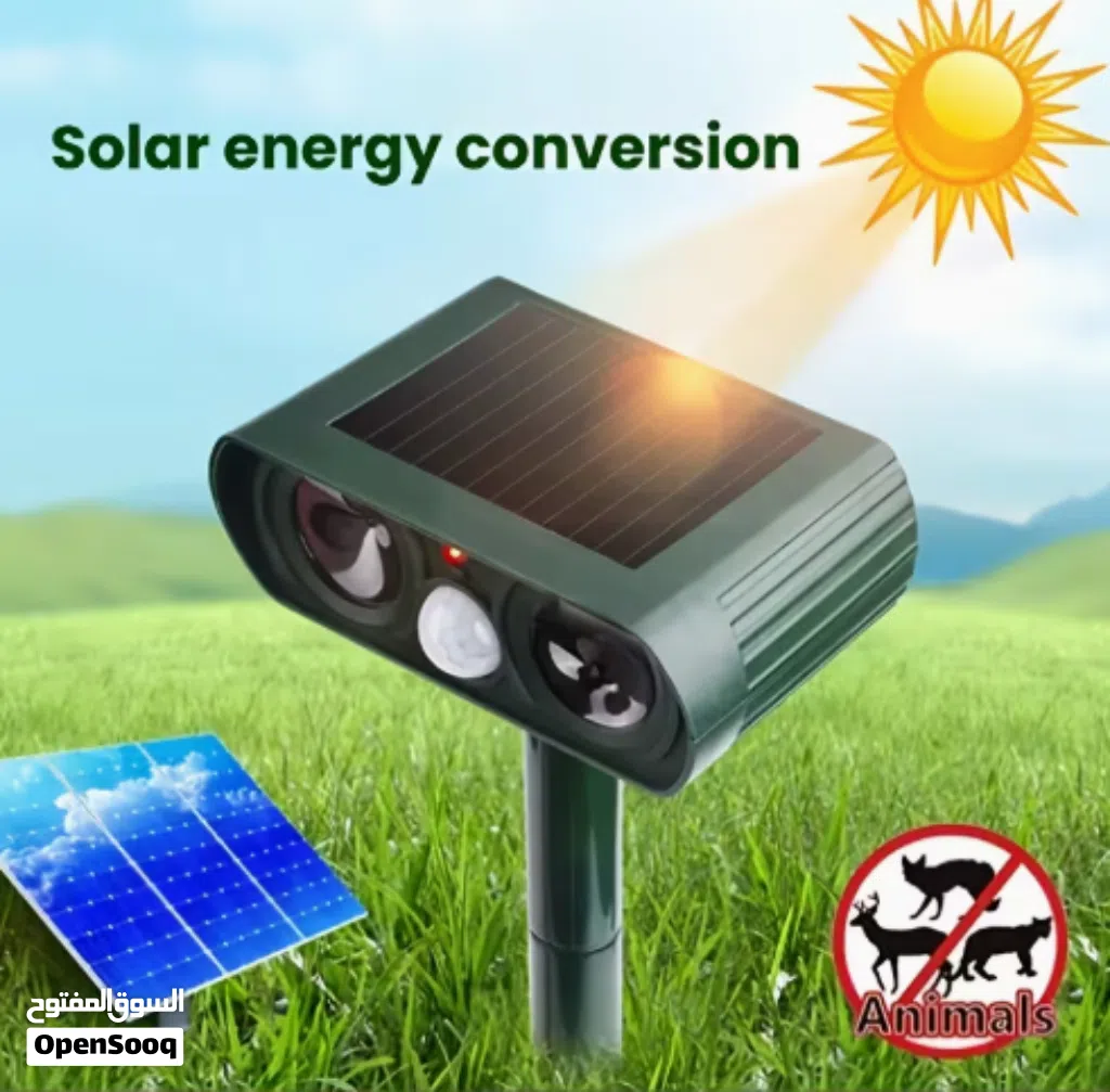 طارد حيوانات بالطاقة الشمسية مع مستشعر حركة لتبديد القطط والغزلان والسنجاب والكلاب والظربان
