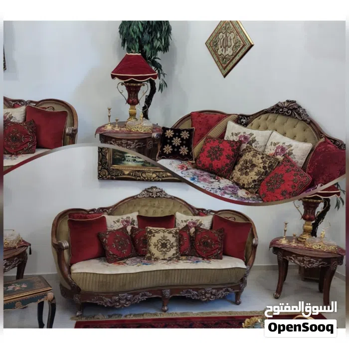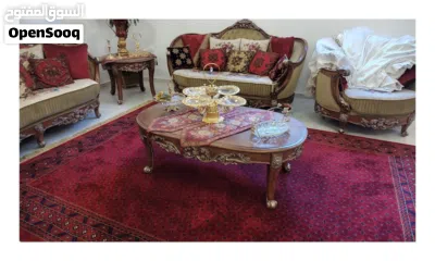 طقم كنب صالون فاخر وارد السعوديه مع عدد 2 اباجور وسجادة تركي فاخرة للبيع