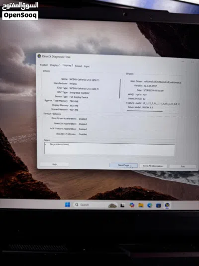 جهاز لابتوب توب اسوس جيمنج cor i5 معالج h وكرت شاشه 1650ti