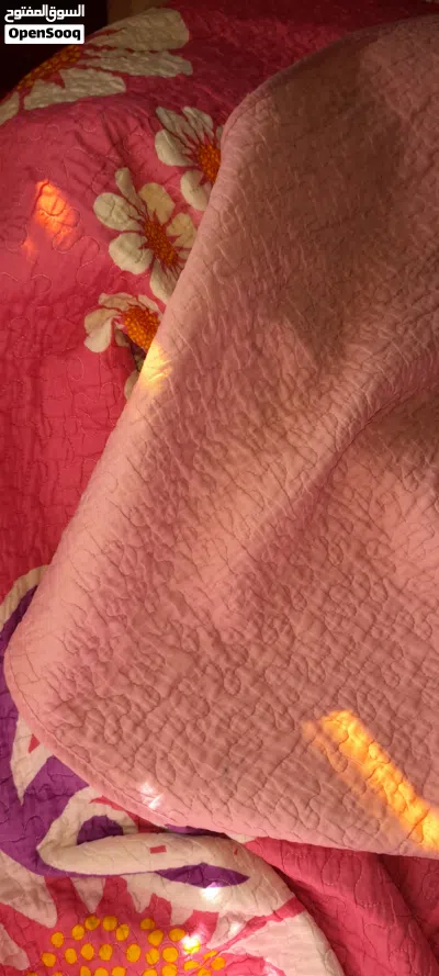 وجه سرير مستعمل للبيع مع وجه للمخده بلونين البنفسجي والزهر للبيع