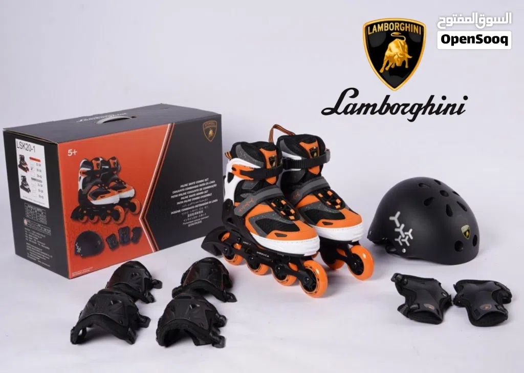 هل يبحث طفلك عن التميز والسرعة؟ الآن يمكنك اقتناء مجموعة التزلج الكاملة من العلامة التجارية الشهيرة Lamborghini بتصميمها الرياضي الجذاب باللونين البرتقالي والأسود.
