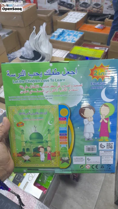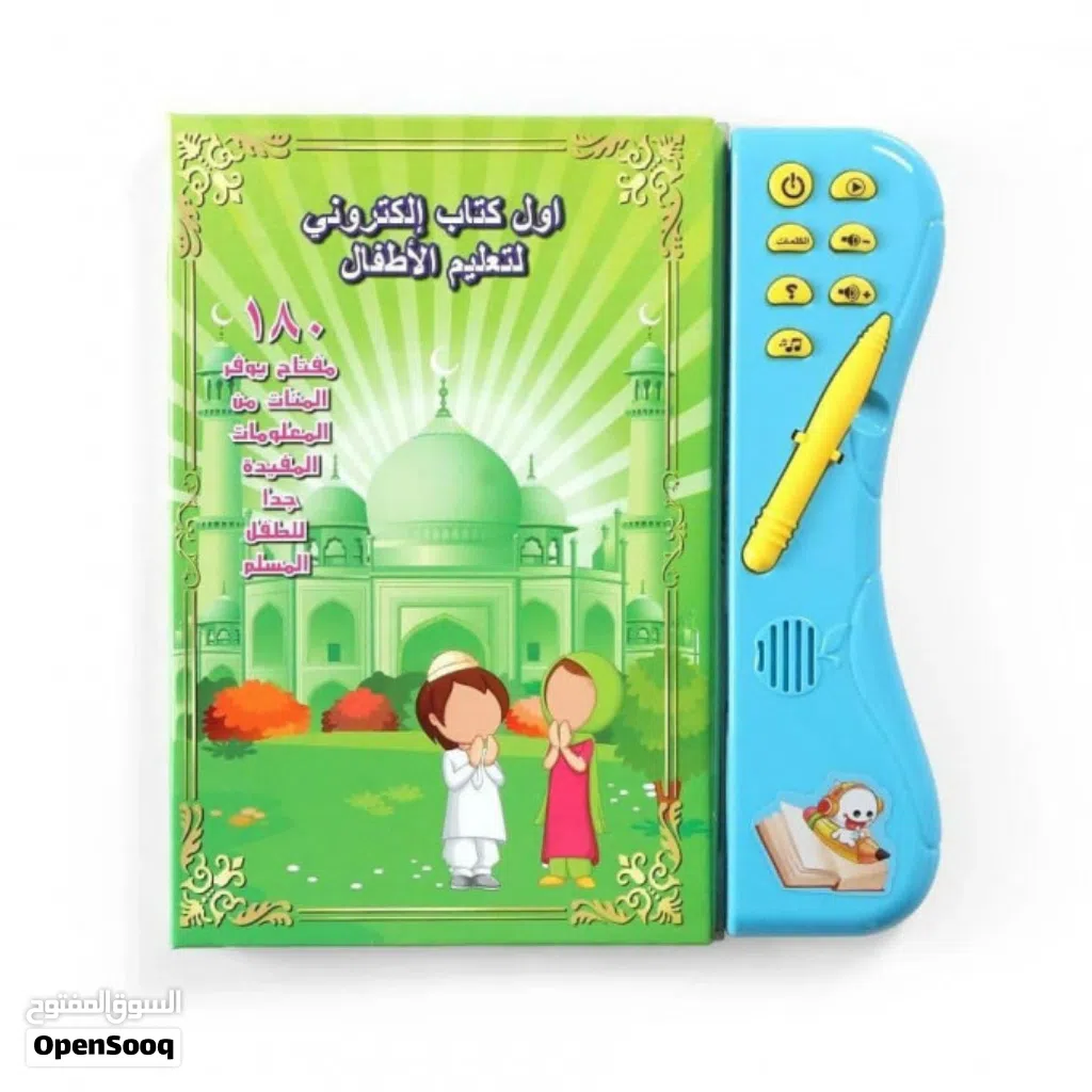 لتعليم االحروف باللغه العربية وايضاً الفواكة والحيوانات والالوان والارقام باللغة العربية وبعض سور القران الكريم والكثير داخل هذا الكتاب الرائع