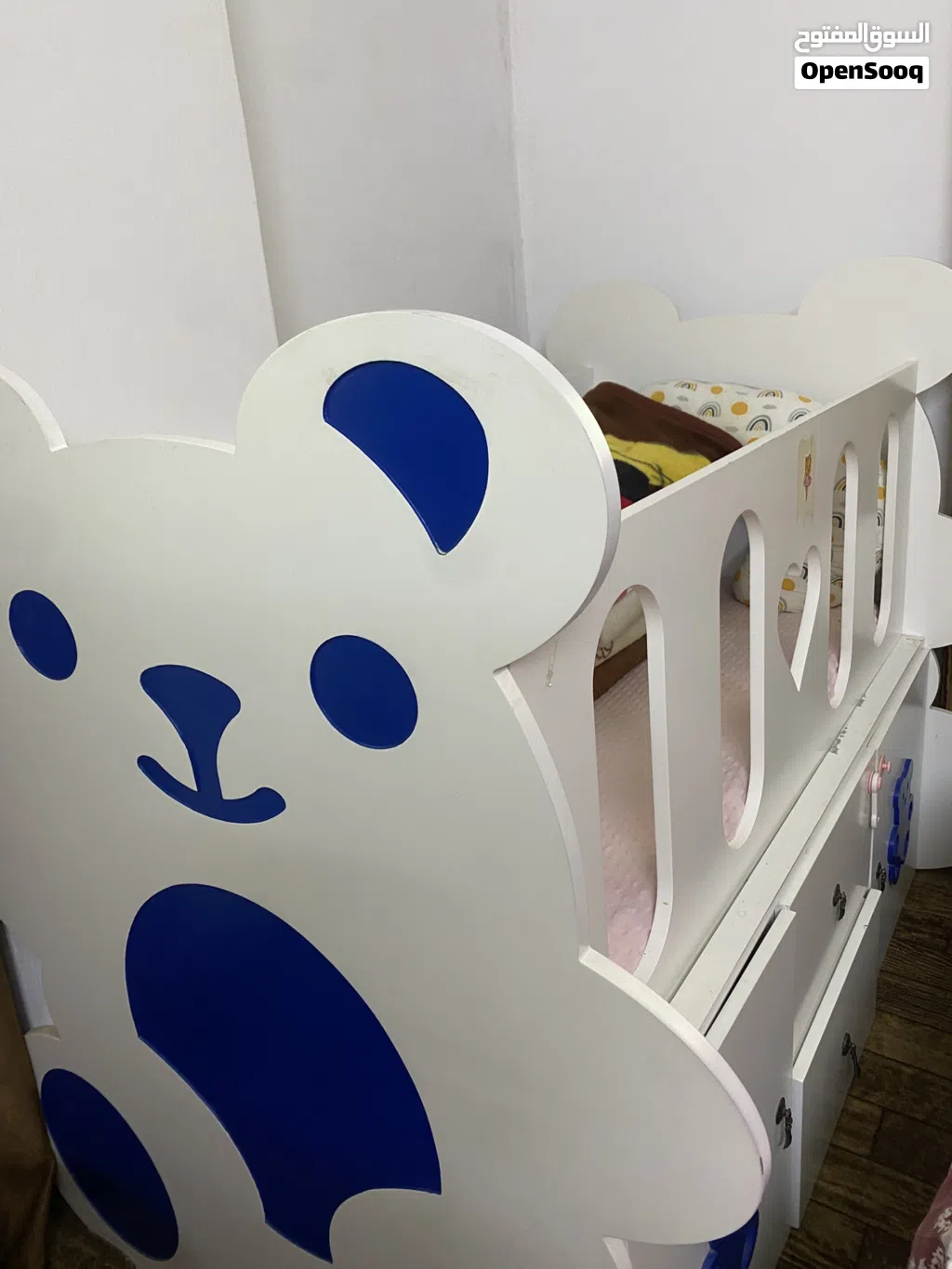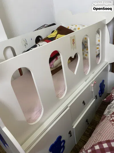 سرير أطفال يحتوي على خزائن سفليه كبيره وادراج استعمال بسيط شبه جديد