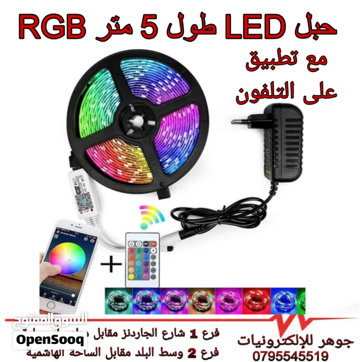 حبل LED طول 5 متر RGB مع تطبيق على الهاتف