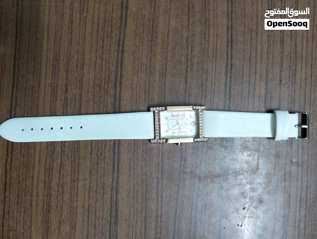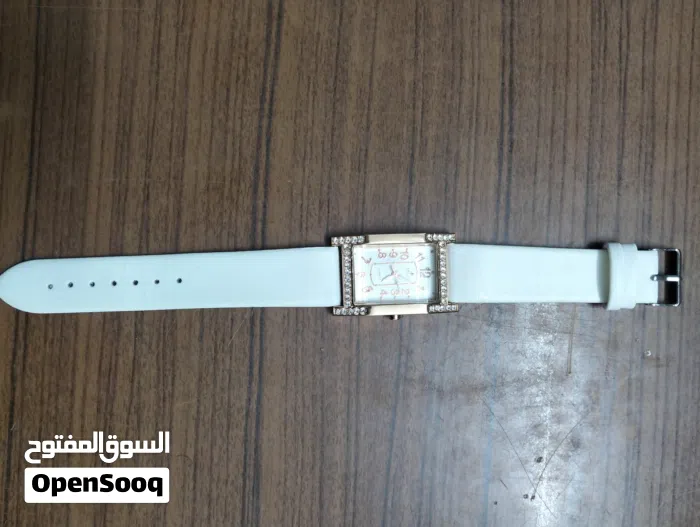 ساعة ستاتي لون ابيض وخامة جلد وشاشة ذهبي