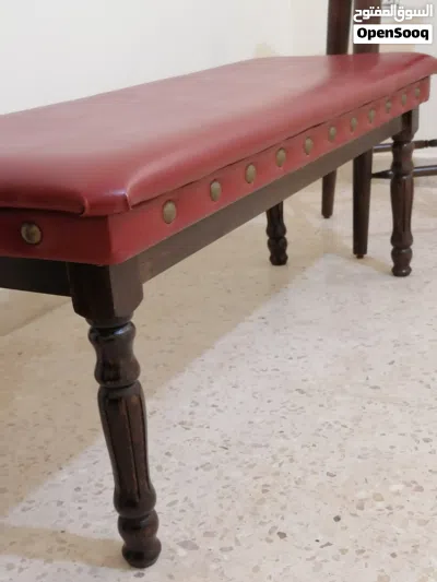 طقم من بنش عريض وبنش طويل عدد 2 مصنع يدوي من خشب الزان وجلد ألماني
