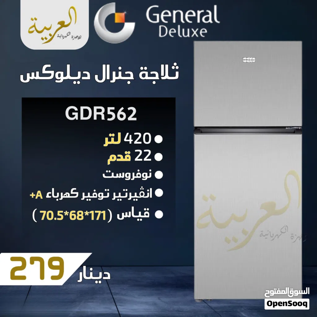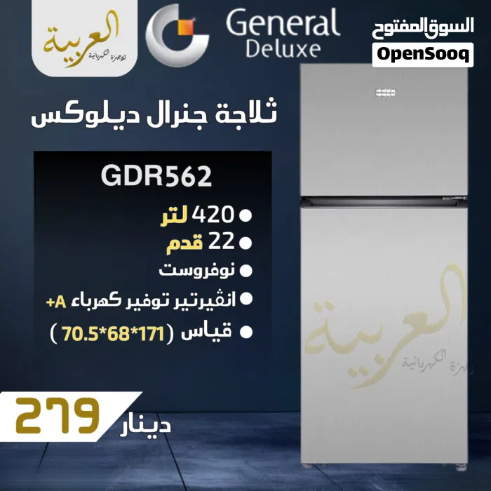ثلاجة جنرال ديلوكس 22 قدم 420 لتر نوفروست انڤيرتر نظام توفير طاقة A+ كفالة لمدة عامين بأفضل سعر بالمملكة