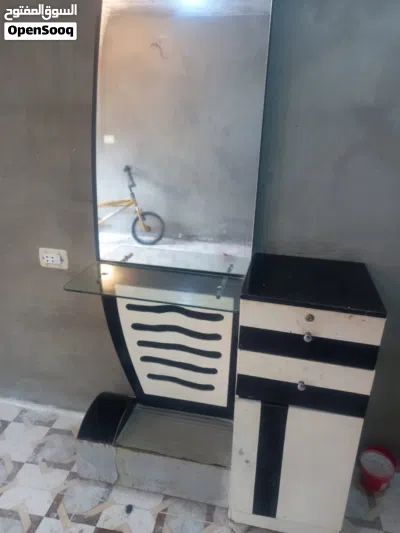كرسي حلاقه تب نظافه مع وحده ادراج ومراي للبيع المستعجل موجوده في سحاب فقط 60دينار