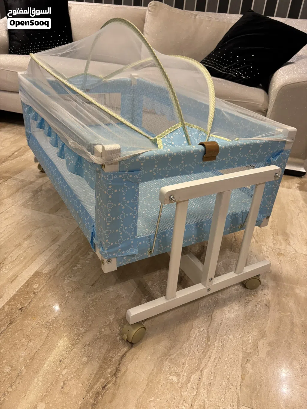 سرير اطفال صغير هزاز مع عجلات اقرا الوصف