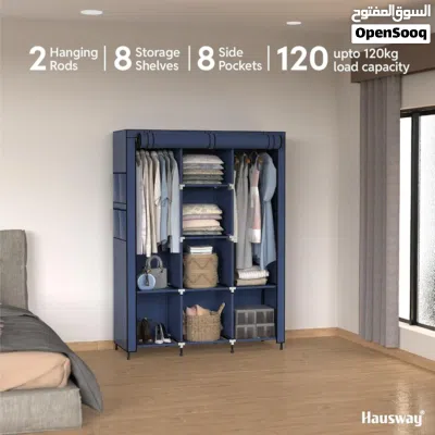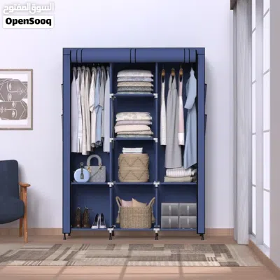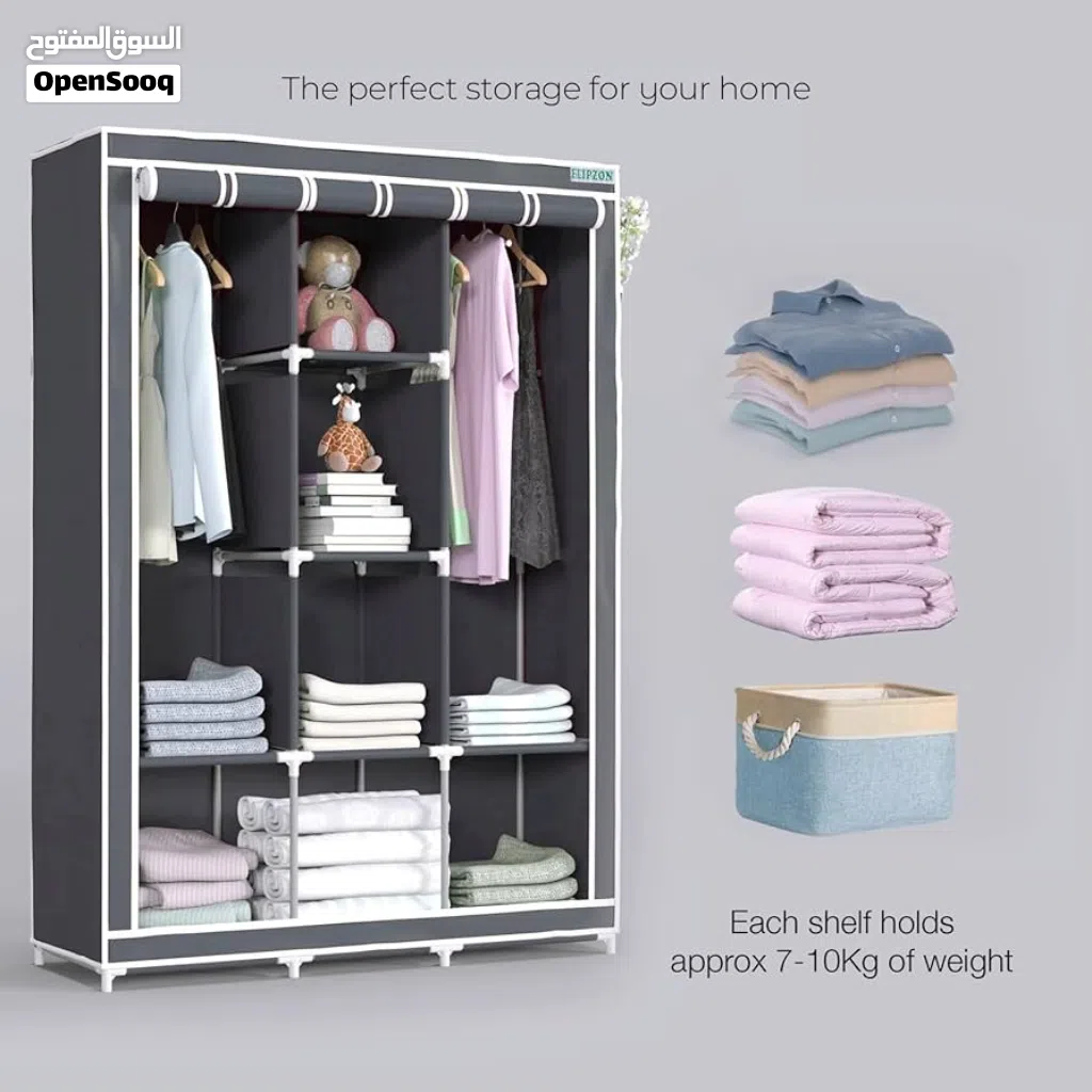 خزانة ملابس قماشية قابلة للطي قماش كتان وتر بروف هيكل معدني قوي متوفره بعدة الوان