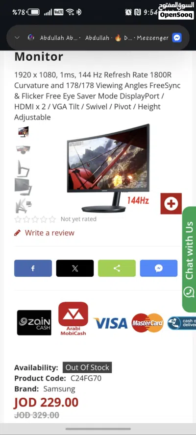 شاشه سامسونج OLED سمارت معدل تحديث 144 hz