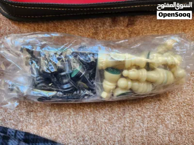 طقم طاولة + شطرنج داخل حقيبة مميزة جداً رول رقعة من الجلد الفخم بلون اسود و ذهبي و قطع شطرنج عاجية !