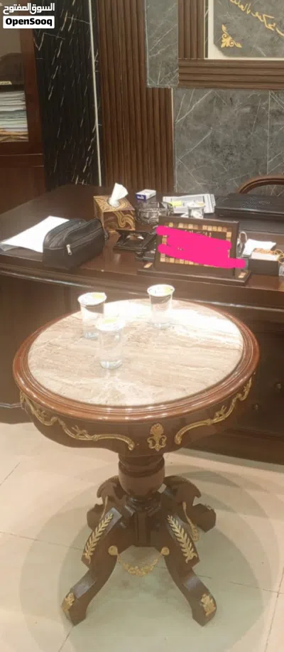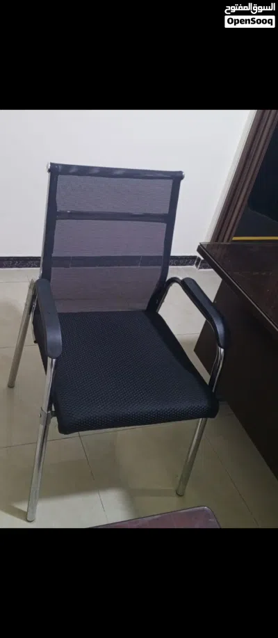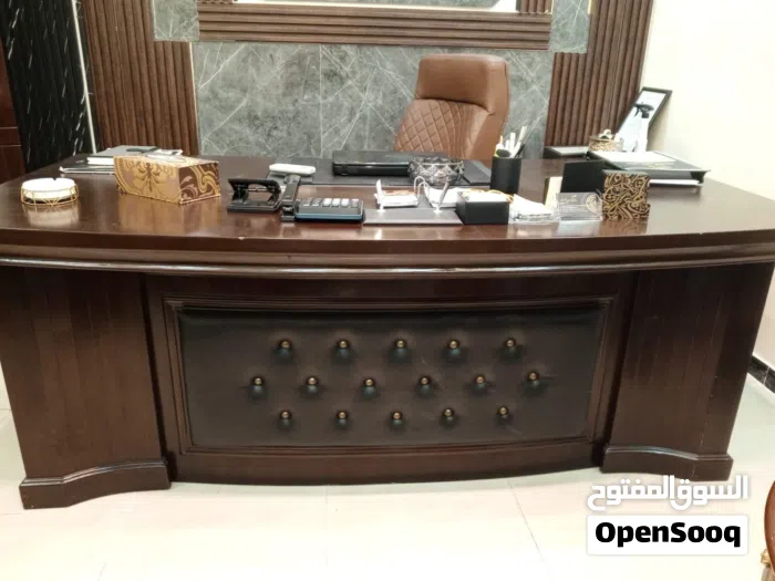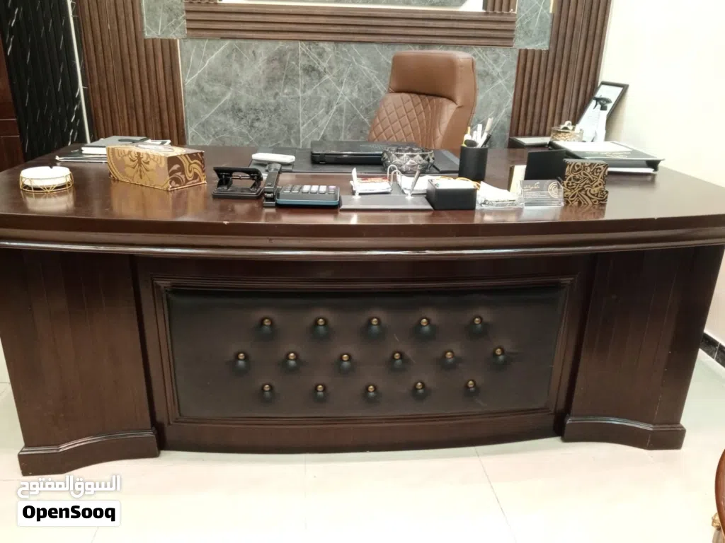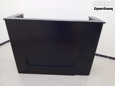 كاونتر استقبال مع كرسي دوار كراسي انتظار عدد 3 كراسي كشاف ديكور 3 لمبات باب اوكورديون عدد 2 وخزانة مكتب