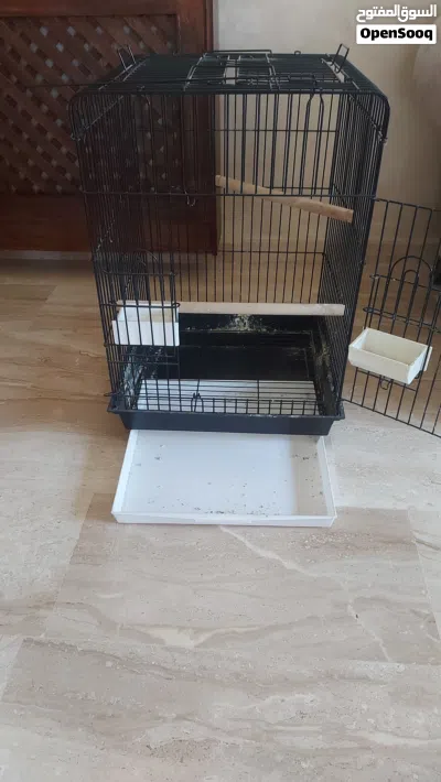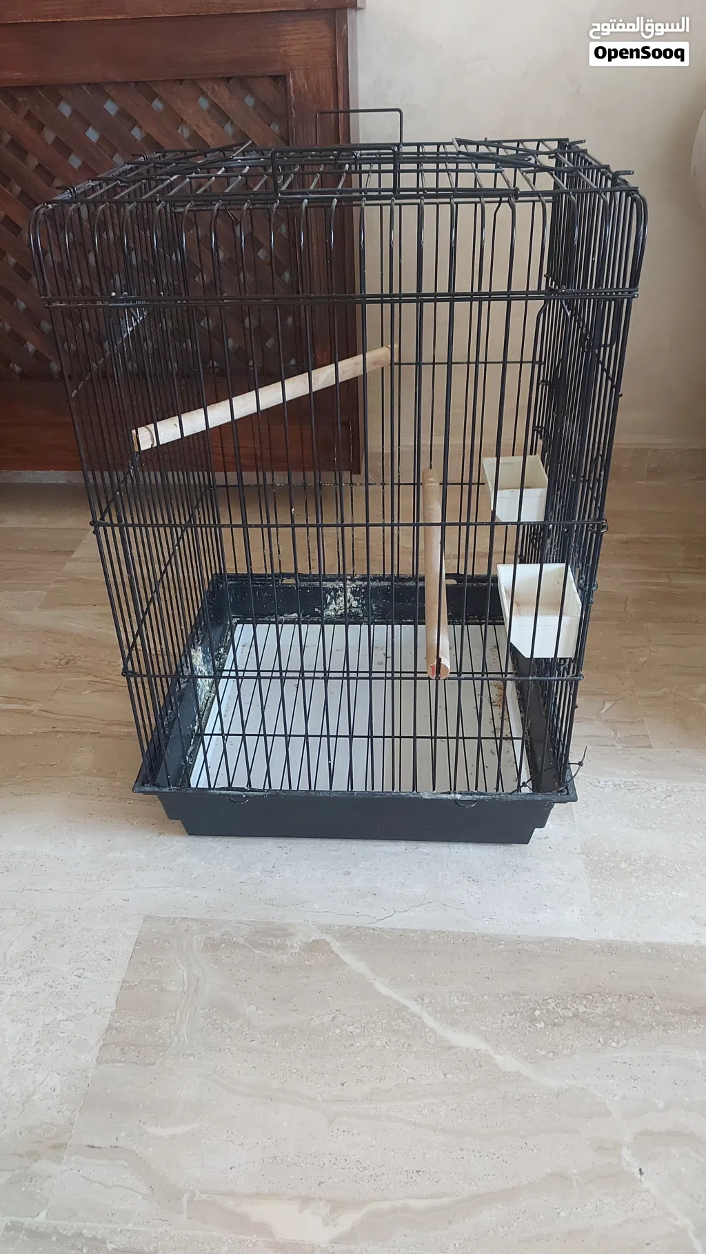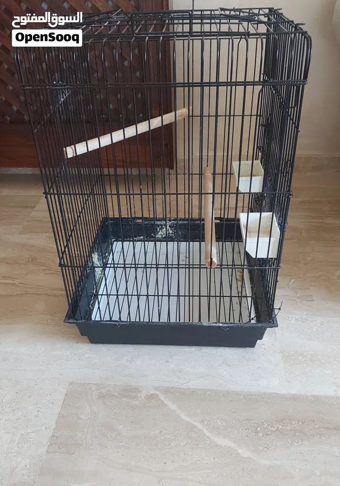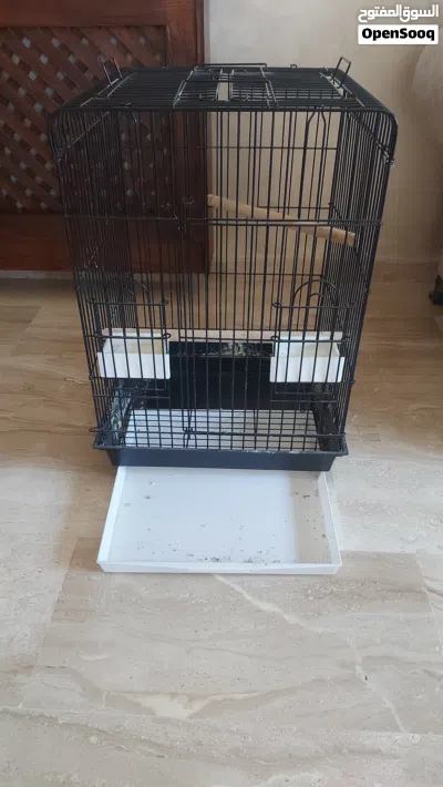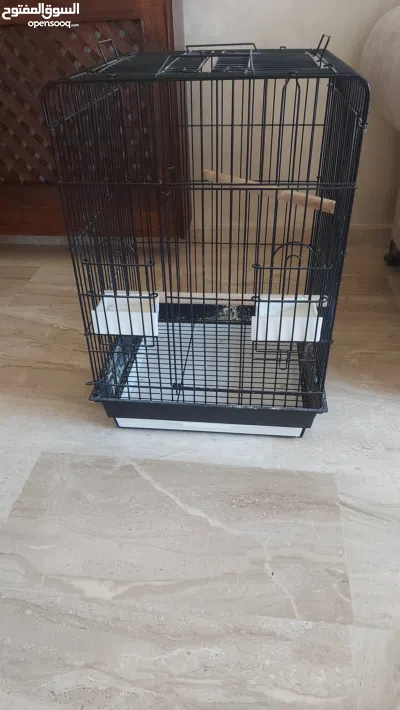 قفص طيور معدن ايطالي حجم كبير لون اسود ارتفاع 68سم عرض 46سم مع صحنين ودرج سفلي متحرك ومسكتين معدن