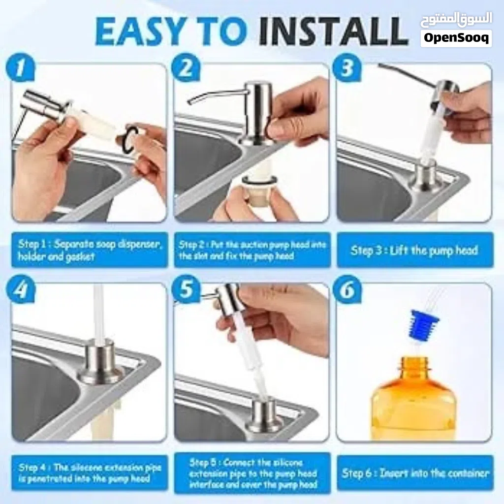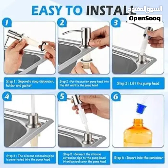يستغرق الأمر بضع دقائق فقط لتركيب موزع الصابون المغسلة على معظم أحواض المطبخ أو منضدة الحمام أو أي أسطح المناضد