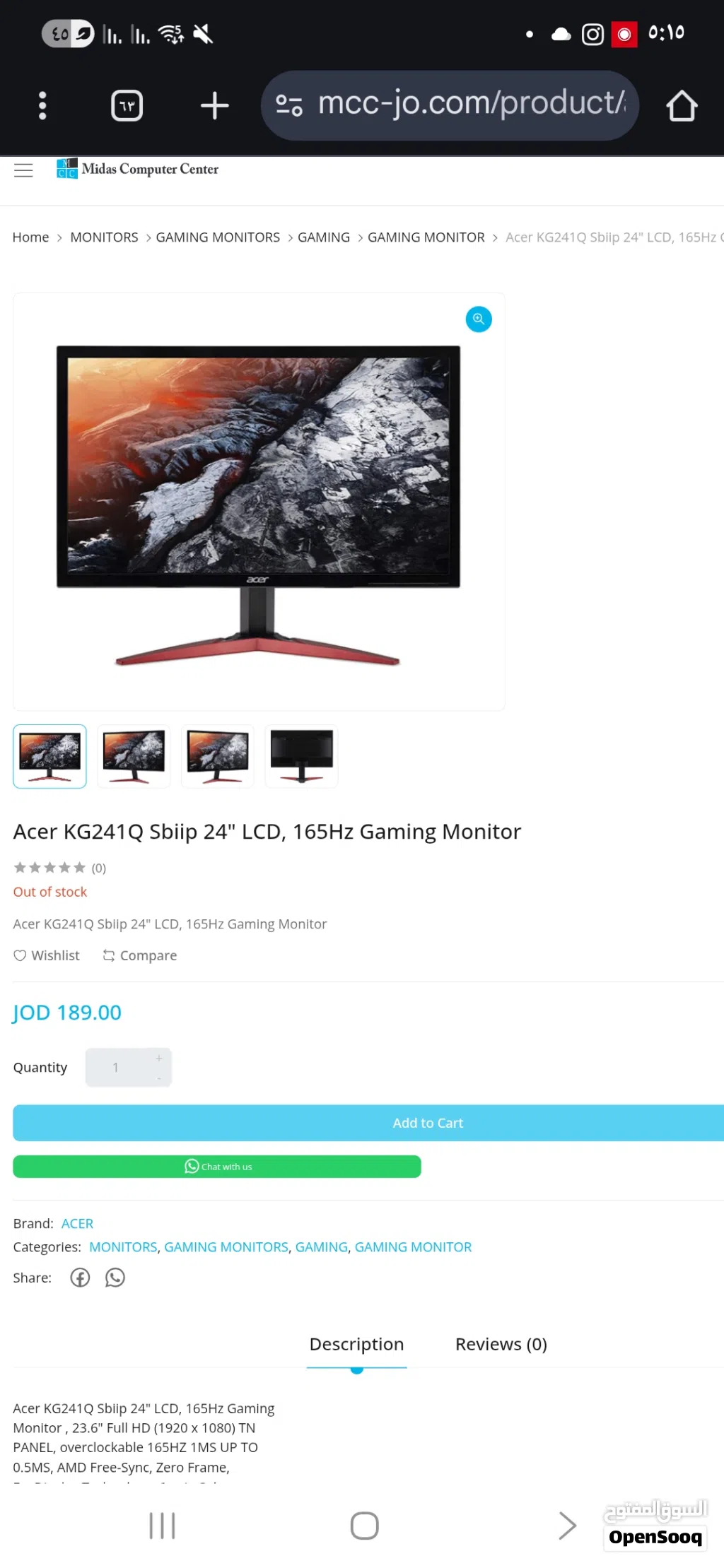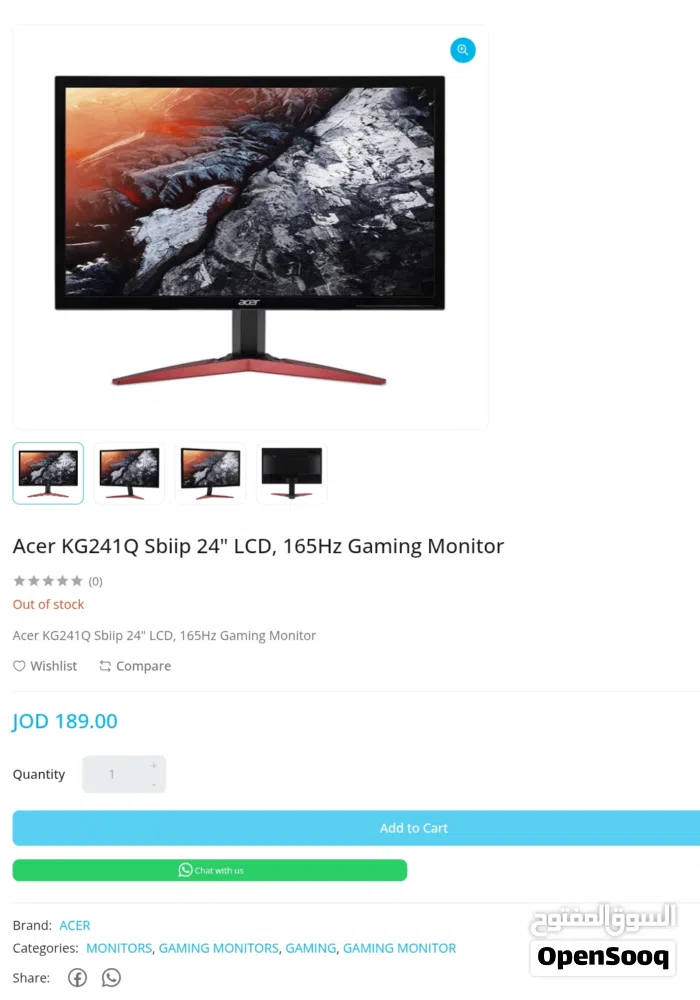 Acer KG241Q Sbiip 24" LCD, 165Hz استعمال نظيف جدا و شاشة تدعم ps5 ب 120 فريم بجودة فخمة