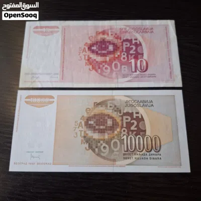 عملات ورقيه يوغسلافى قديمه عدد 13 بسعر 15 دينار نهائى