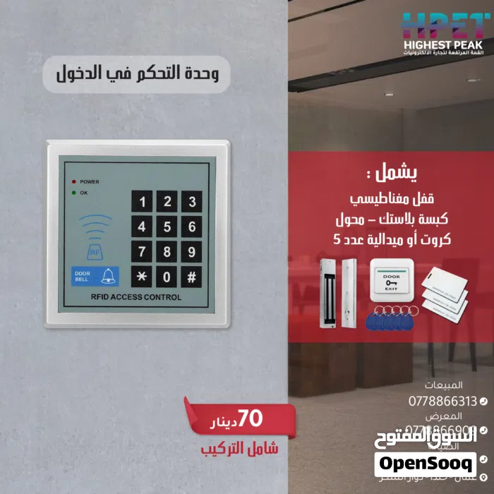 (بصمة - كرت - لوحة مفاتيح) مع كامل الإكسسوارات