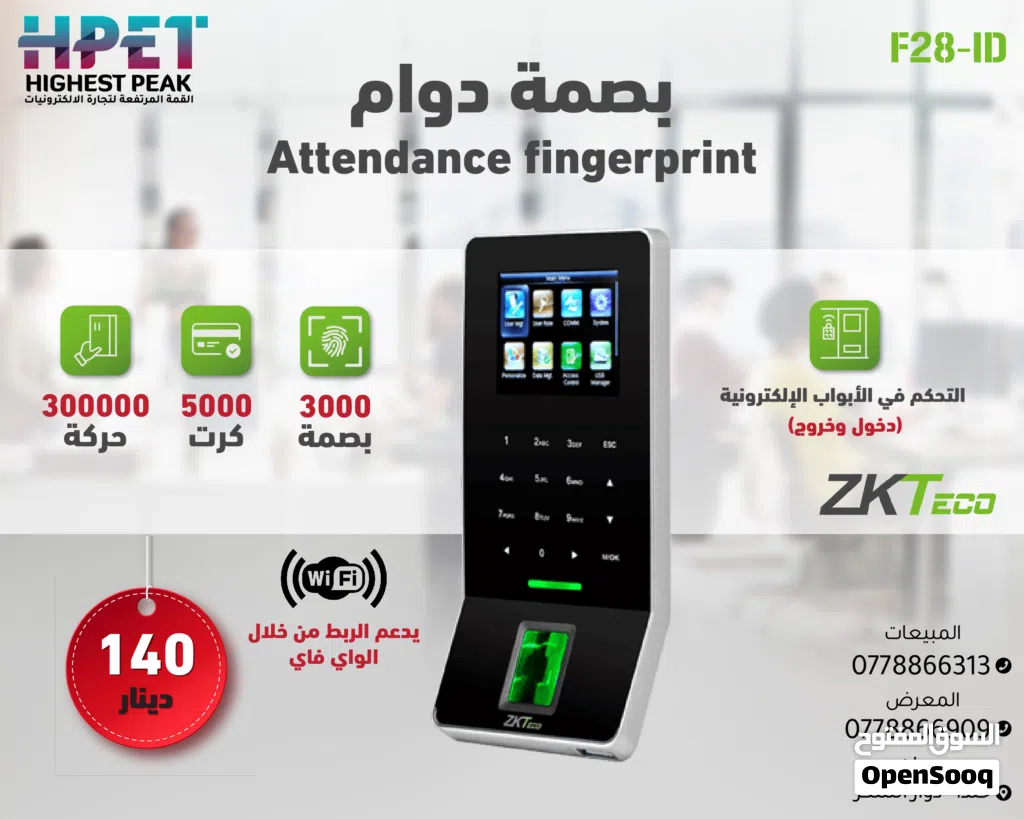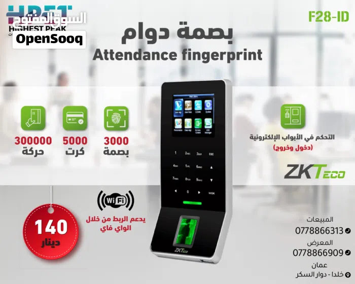 جهاز بصمة، ZKTeco F28، جهاز حضور وانصراف، جهاز تحكم بالأبواب، بصمة واي فاي، نظام دوام، جهاز واي فاي لبصمة الموظفين، قارئ بصمة، قفل إلكتروني، RFID