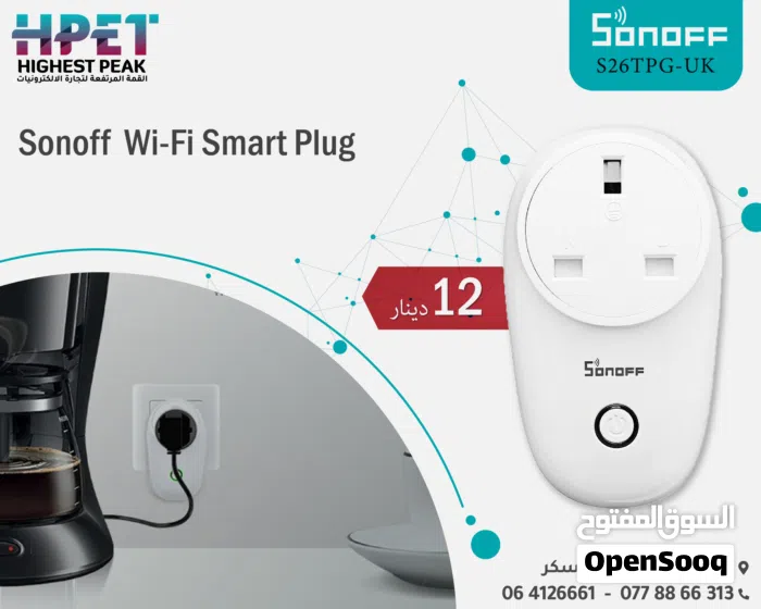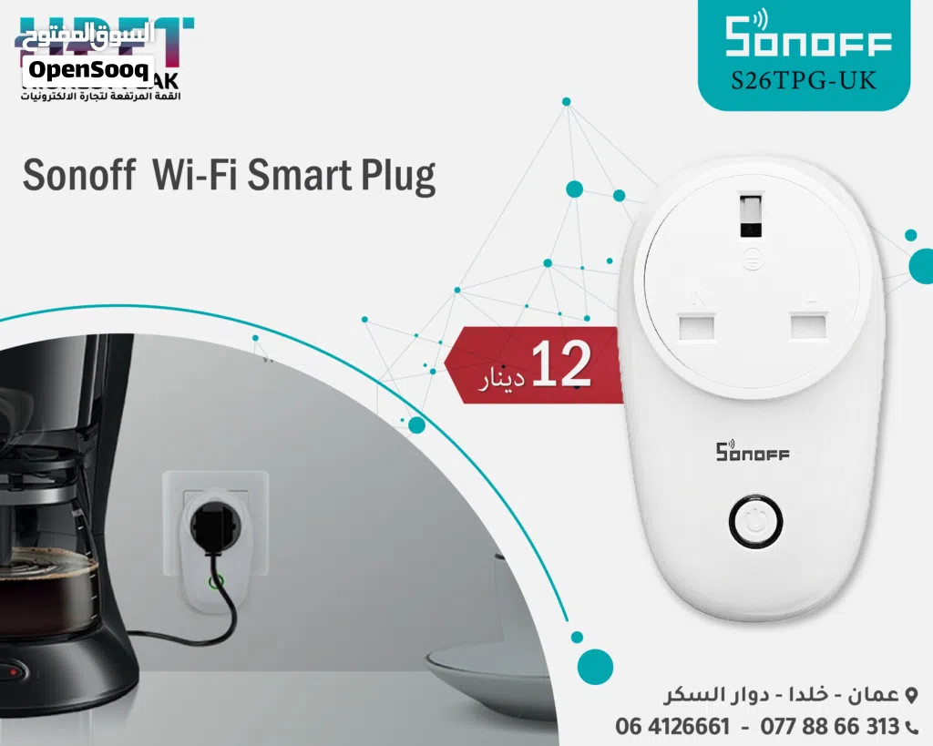 Sonoff، S26، WiFi Plug، مقبس ذكي، المنزل الذكي، UK Standard، eWeLink، Alexa، Google Home، Smart Home، الأردن