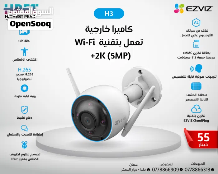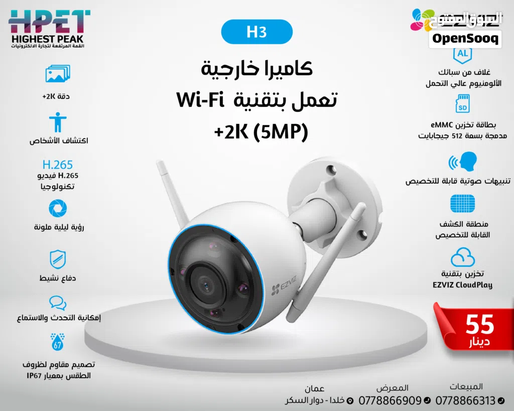 كاميرا EZVIZ H3، كاميرا 5 ميجا، كاميرا مراقبة خارجية، H3 3K، EZVIZ outdoor camera، كاميرات ذكية، مراقبة بالفيديو، انذار صوتي، كاميرا مقاومة للمطر، IP67، رؤية ليلية ملوّنة.