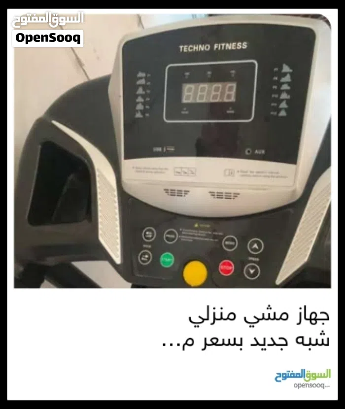 جهاز مشي من ماركة Techno Fitness، مستعمل استخدام خفيف لمدة شهرين بس، نظيف وشغال زي الفل.