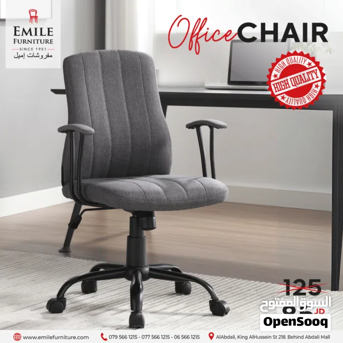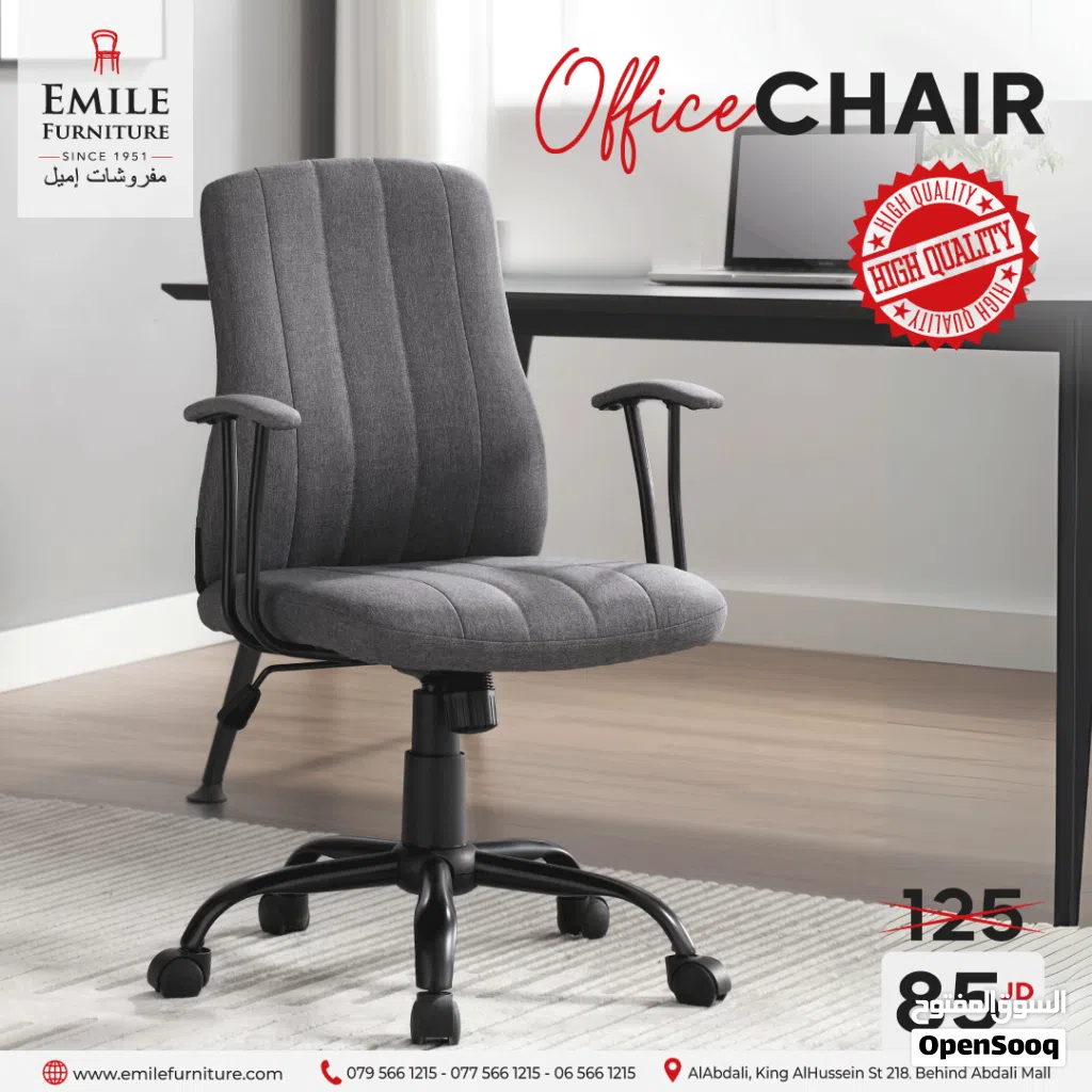 كرسي مكتب فاخر مصنوع من القماش بتصميم مريح وعملي ومزود بأيدي منجدة ومقعد دوار, متوفر خدمة التوصيل