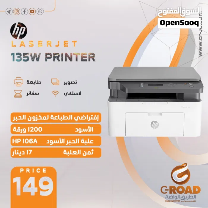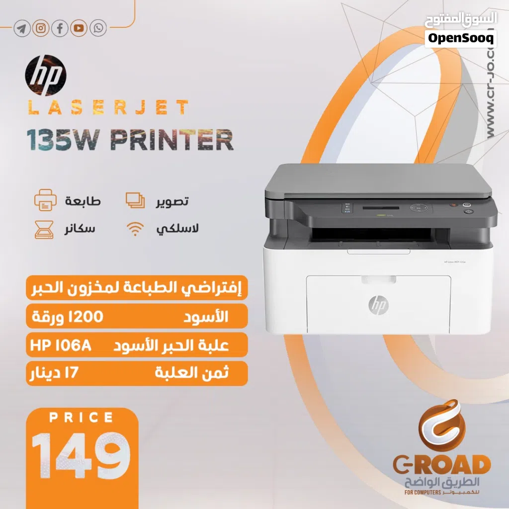 طابعة أتش بي جيت hp LASER JET 135 W PRINTER طابعة تصوير لاسلكي. سكانر