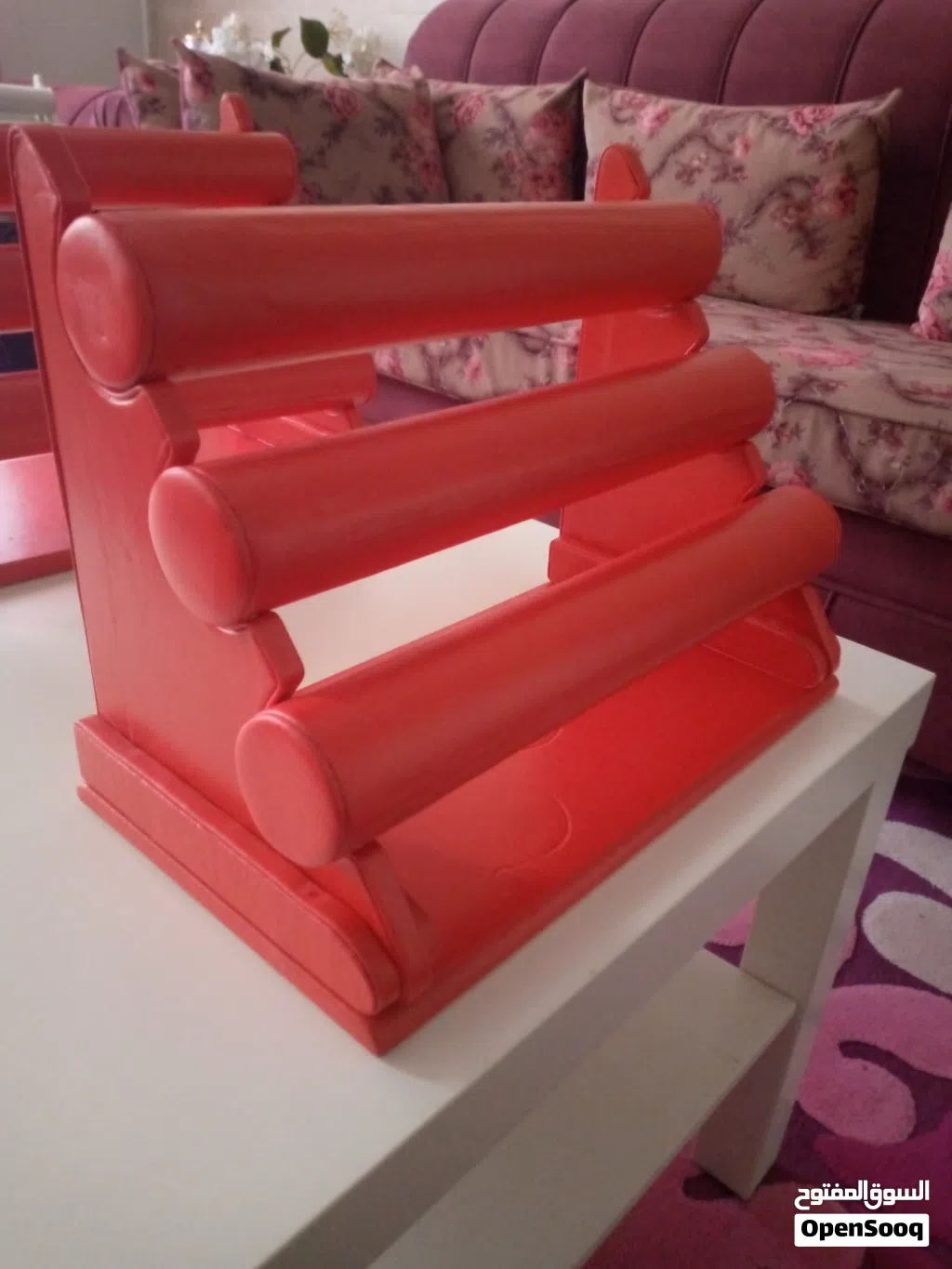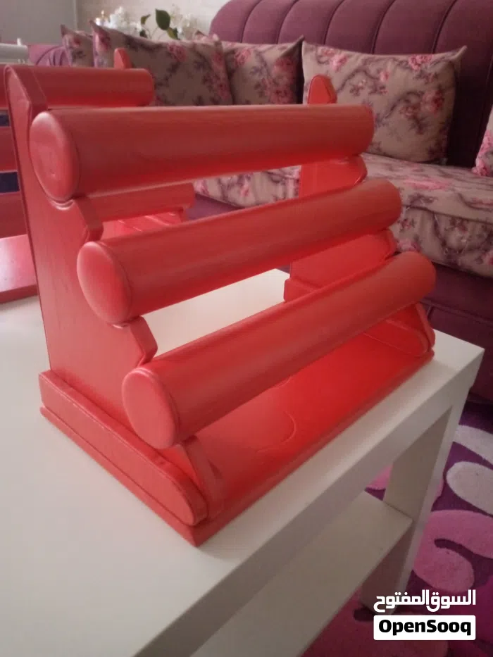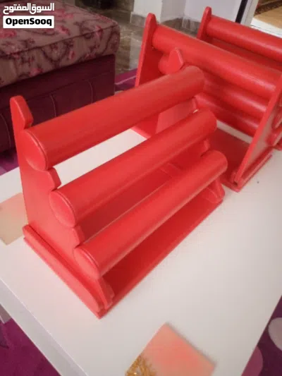 ستاند عرض اساور مدرج مستعمل بحالة جيدة عدد 6 ثلاثة لون احمر وثلاثة لون ابيض ب 15 دينار
