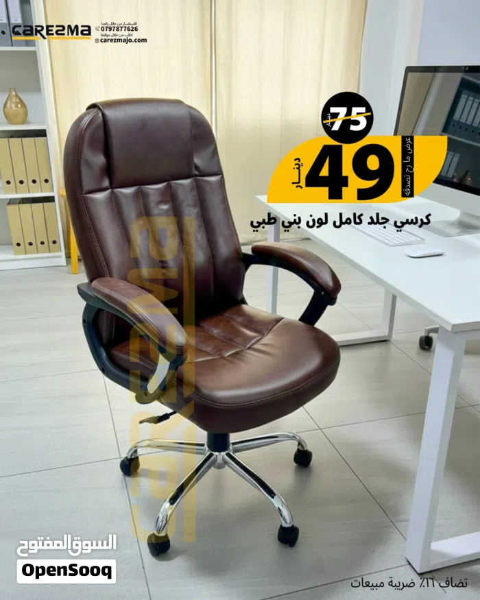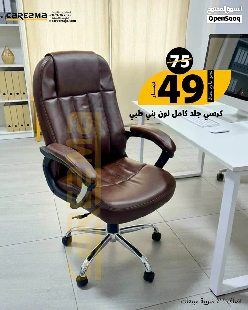 كرسي جلد بتقدر تختار اللون البني أو الأسود بمواصفات طبية من كاريزما CAREZMA بسعر بس بــ 49 دينار