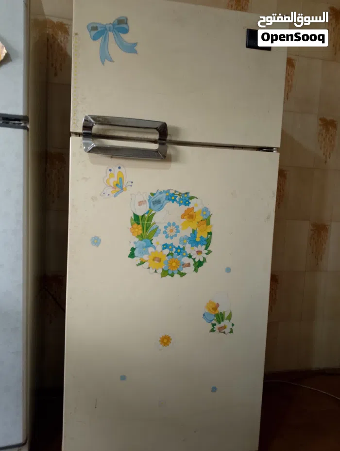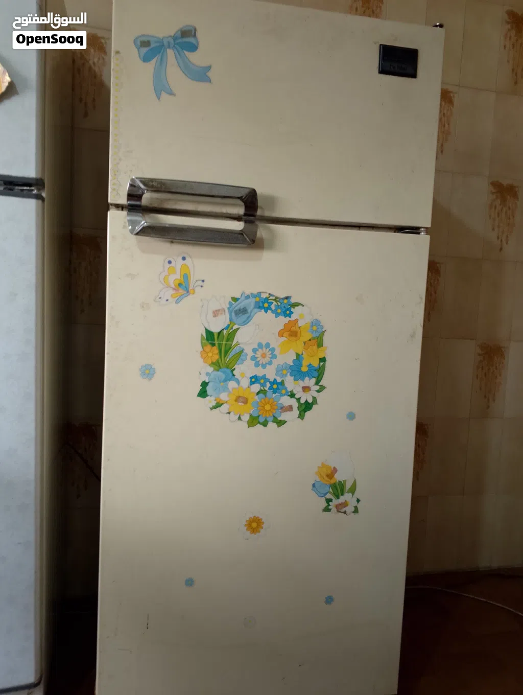 ثلاجةً قديمة بحالة جيدة مع المحول