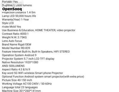 القسم: السوقالفئة: إلكترونياتالنوع: جهاز عرضنوع الإعلان: للبيعنوع البائع: فرديالميزات: دقة كاملة HDالميزات: 5g supportالميزات: اتصال بلوتوثالميزات: واي فايالميزات: أندرويدالميزات: up to 40 150 display screenالحالة: جديدالعلامة التجارية: regalالموديل: rd 839مصدر الطاقة: التيار المترددالدقة: 1080 بكسل