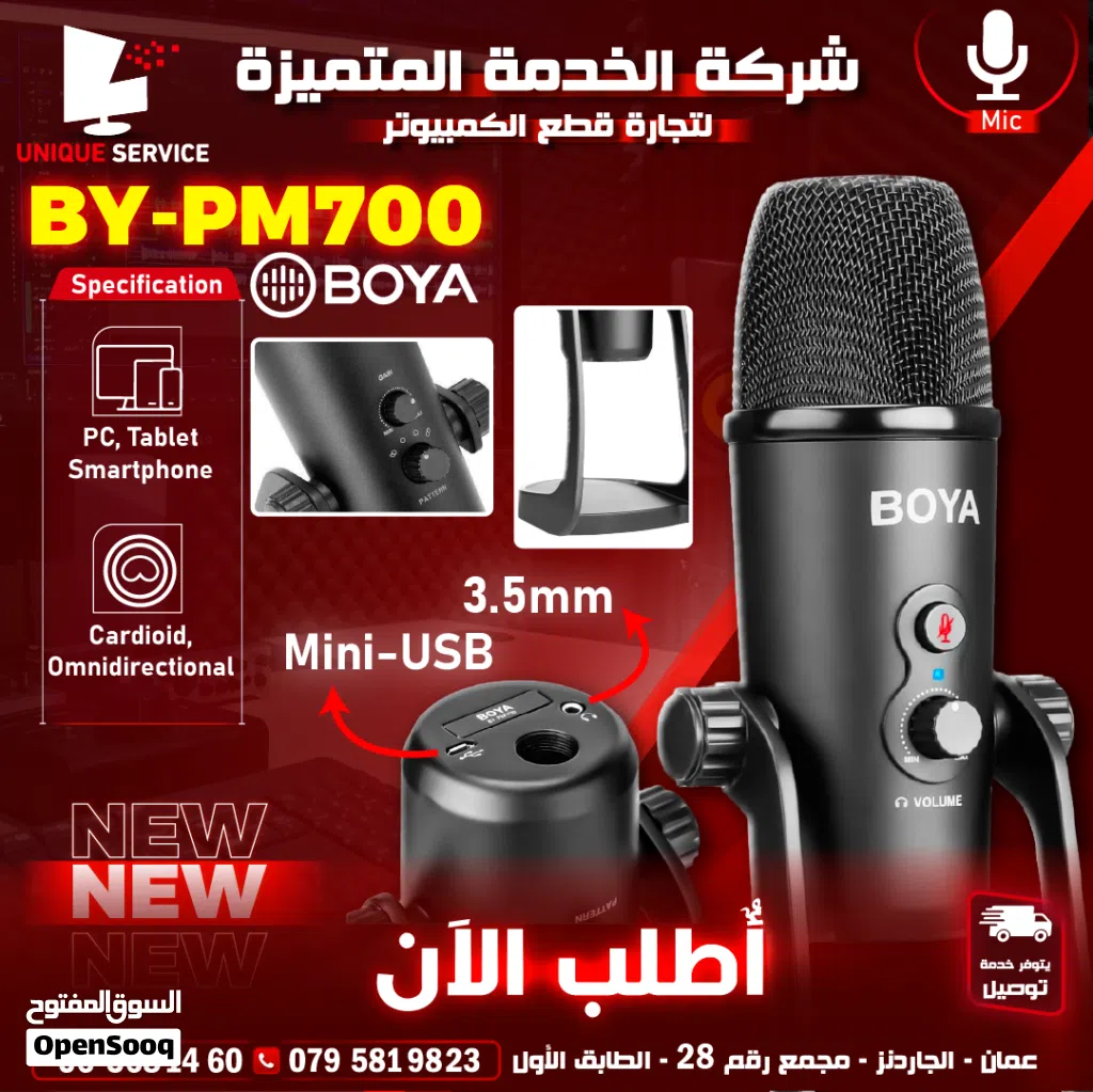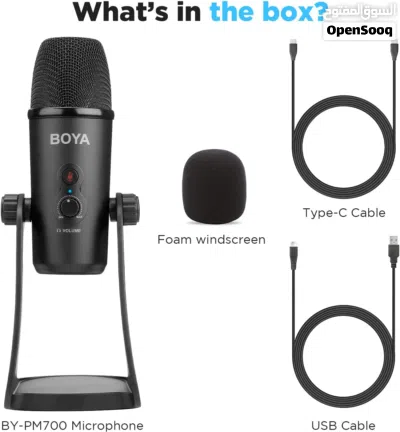 ميكروفون بويا BY-PM700 هو ميكروفون USB متوافق مع أنظمة تشغيل Windows وMac، ويتميز بتصميم ثلاثي الكبسولات مع أربعة أنماط استلام (ستيريو، كارديويد، متعدد الاتجاهات، وثنائي الاتجاه). يُعتبر مثاليًا للبودكاست، والبث، والتسجيلات الصوتية.