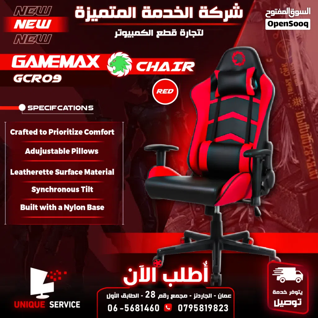 كرسي جيمنغ جيماكس لون أخضر أزرق أحمر Gamemax Gaming Chair GCR-09 السعر شامل التوصيل