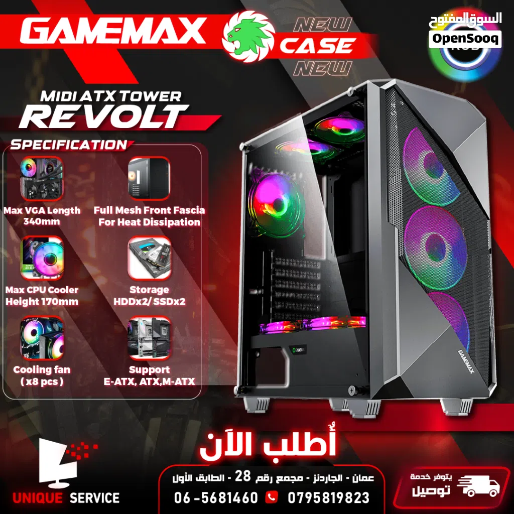 كيس Revolt جيمنغ فارغ احترافي جيماكس تجميعة Gamemax Gaming Revolt Case