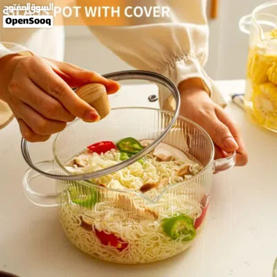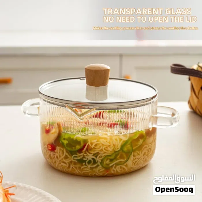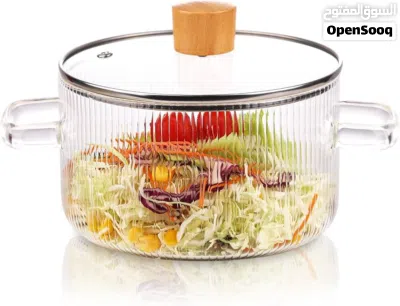 طقم قدور زجاج بوروسيليكات عالي الجودة السعة: 1800 مل زجاج مقاوم للحرارة (High Borosilicat