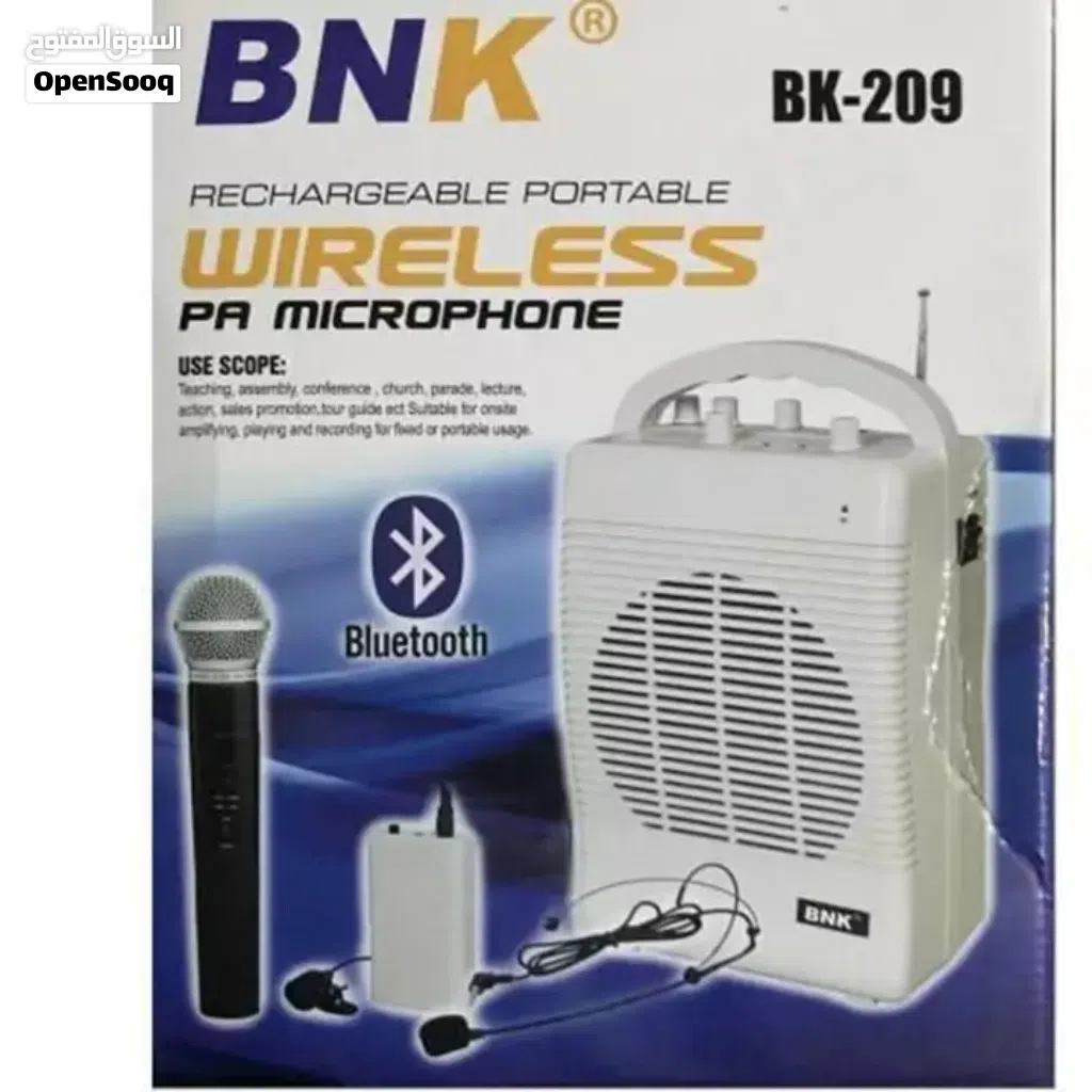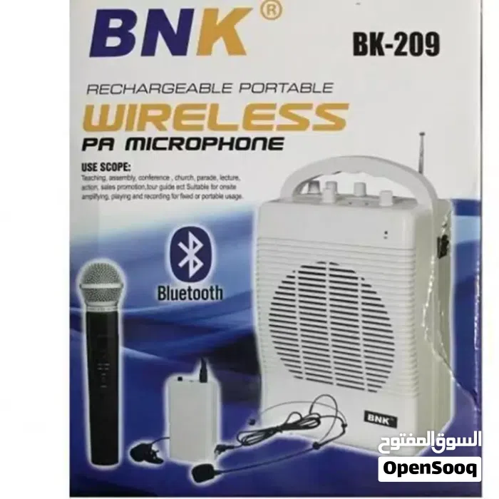 سماعة تعمل على الشحن او على الكهرباء مباشرة مع ثلاث مايكروفونات لاسلكية بميزة صوت عالي وصافي ولإضافة جمالية على الصوت تحتوي على مميزة صدى الصوت ECHO بالإضافة إلى مدخل فلاشة USB وبلوتوث لشبكها على الهاتف