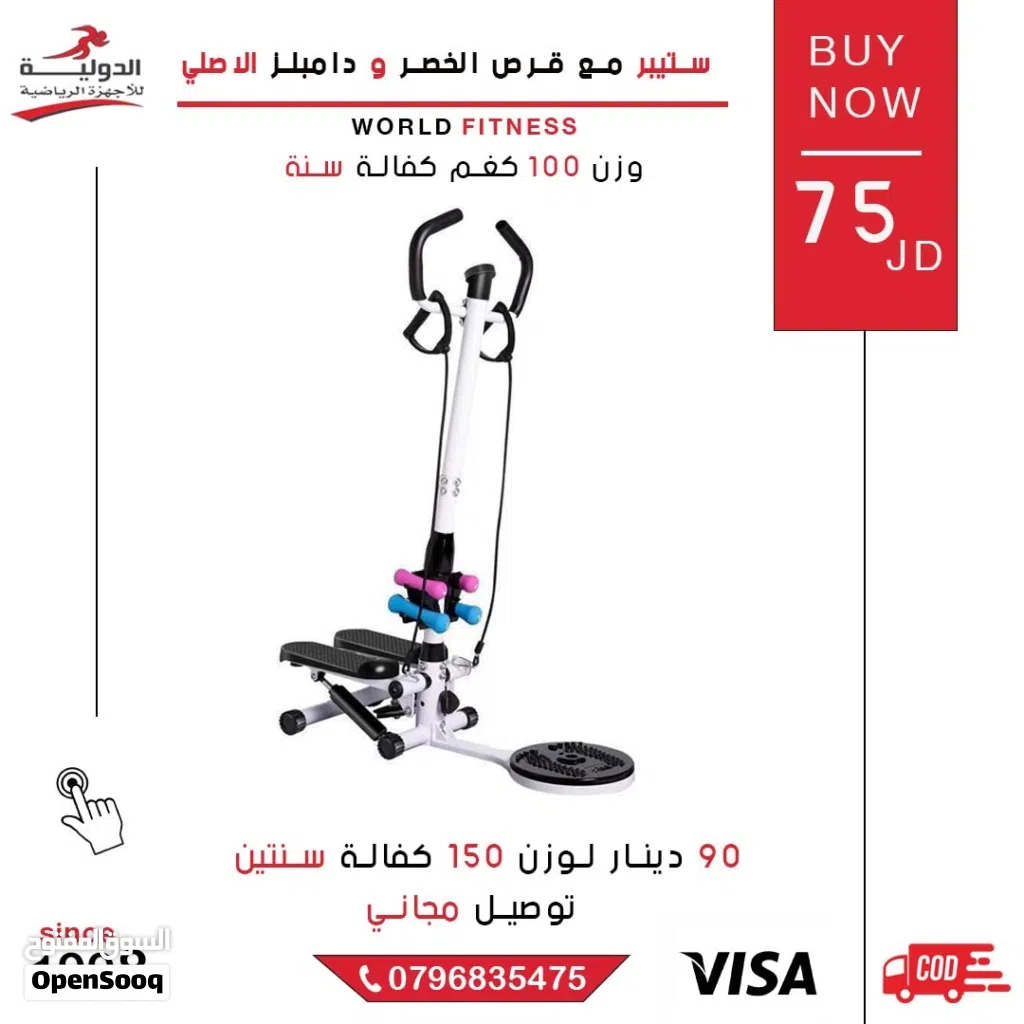 جهاز ستيبر مع قرص الخصر ودامبلز وحبل مقاومة من الدولية للأجهزة الرياضية
