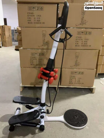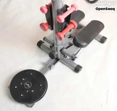 جهاز الستيبر المزود بقرص الخصر والدامبلز وحبل المقاومة من الأجهزة المتكاملة اللي بتجمع أكثر من تمرين بجهاز واحد. مناسب جدًا للتمارين المنزلية لأنه بيوفر لك تجربة شاملة تساعدك على تحريك كامل الجسم من مكان واحد.