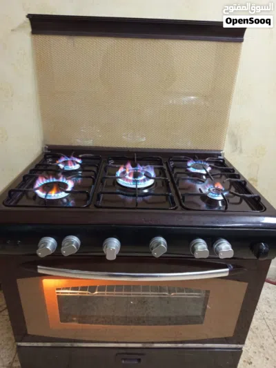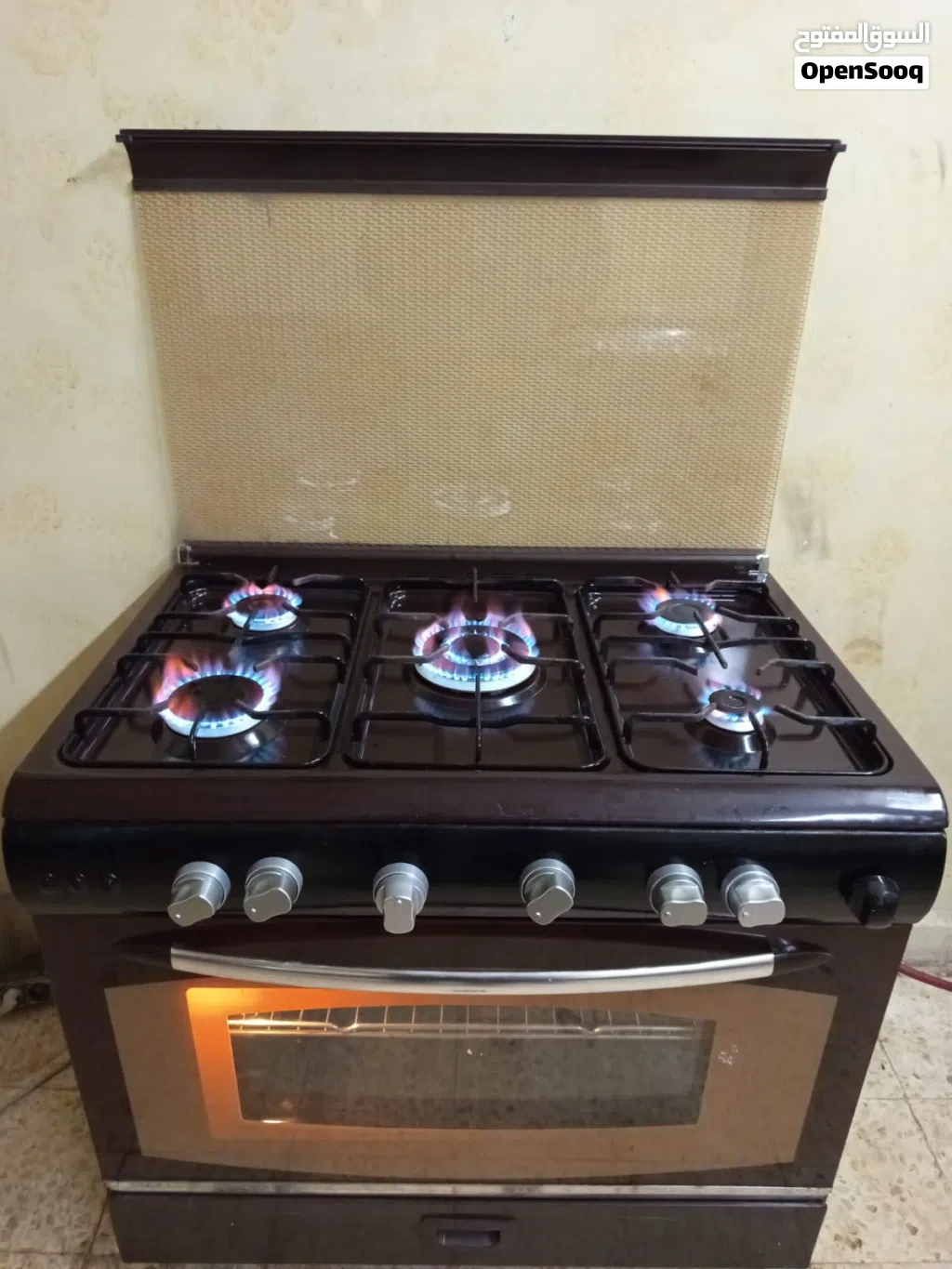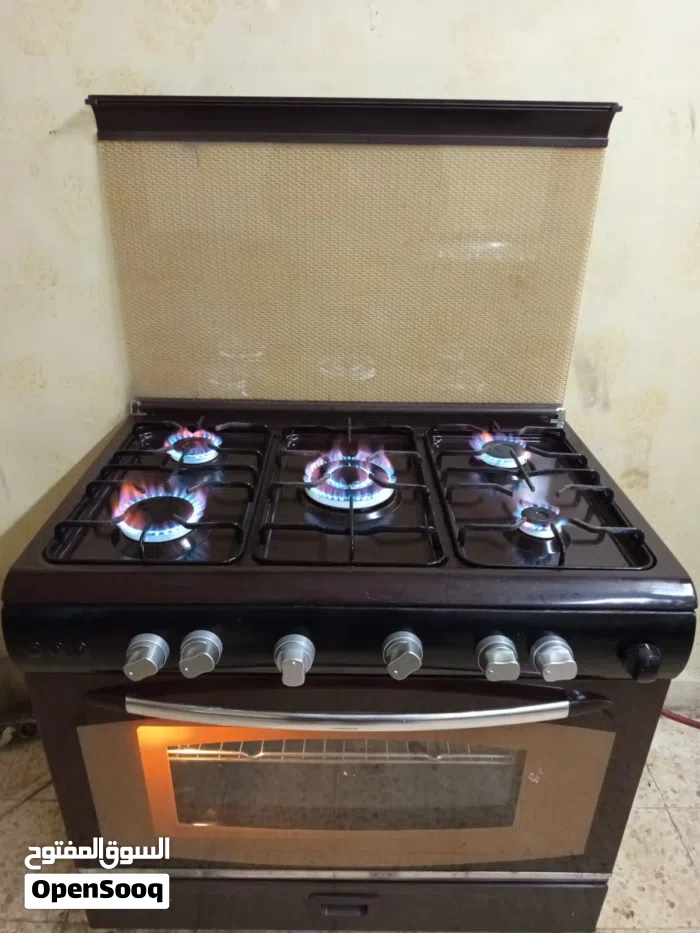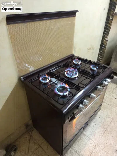 فرن غاز خمس عيون لون بني نوع يونيون فخم قياس 90 سم نار زرقاء قوية فرن قوي